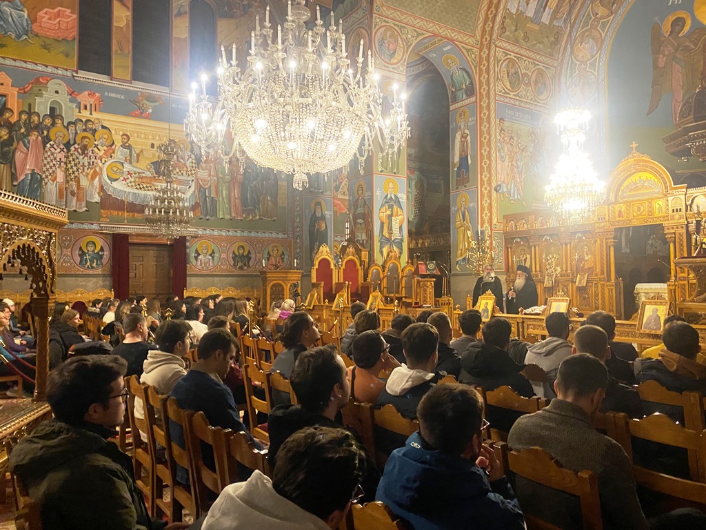 Στη σύναξη των Φοιτητών και Νέων του Ιερού Μητροπολιτικού Ναού Αγίου Νικολάου Βόλου, που πραγματοποιήθηκε χθες, 11/1, υπό την ευθύνη του Πρωτ. Χαριλάου Παπαγεωργίου, βρέθηκε ο Σεβ. Μητροπολίτης Δημητριάδος κ. Ιγνάτιος.