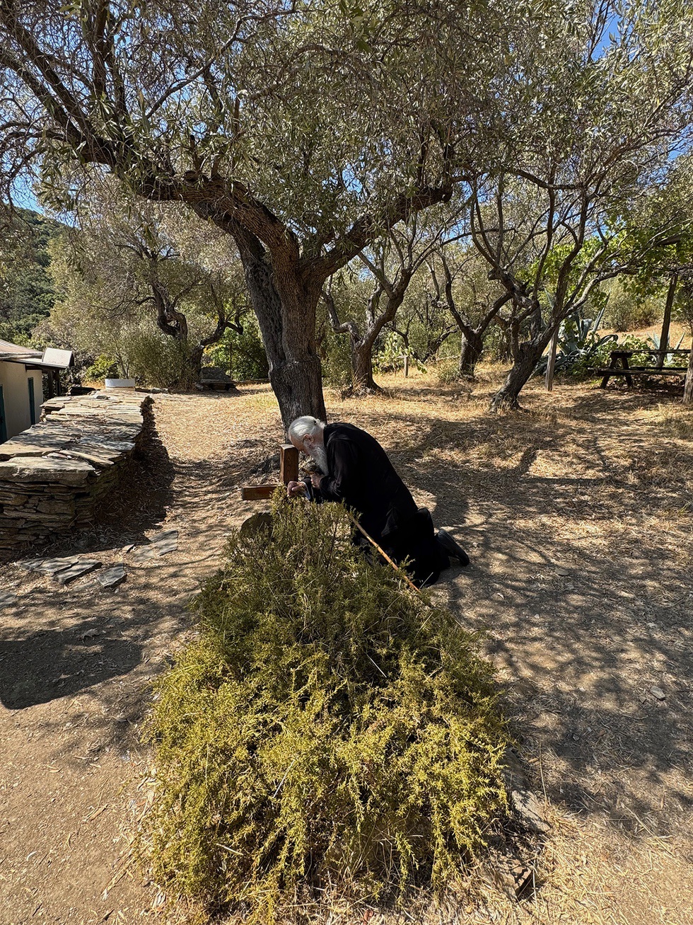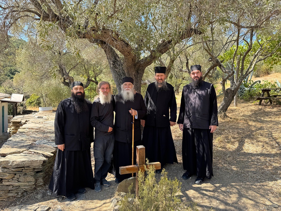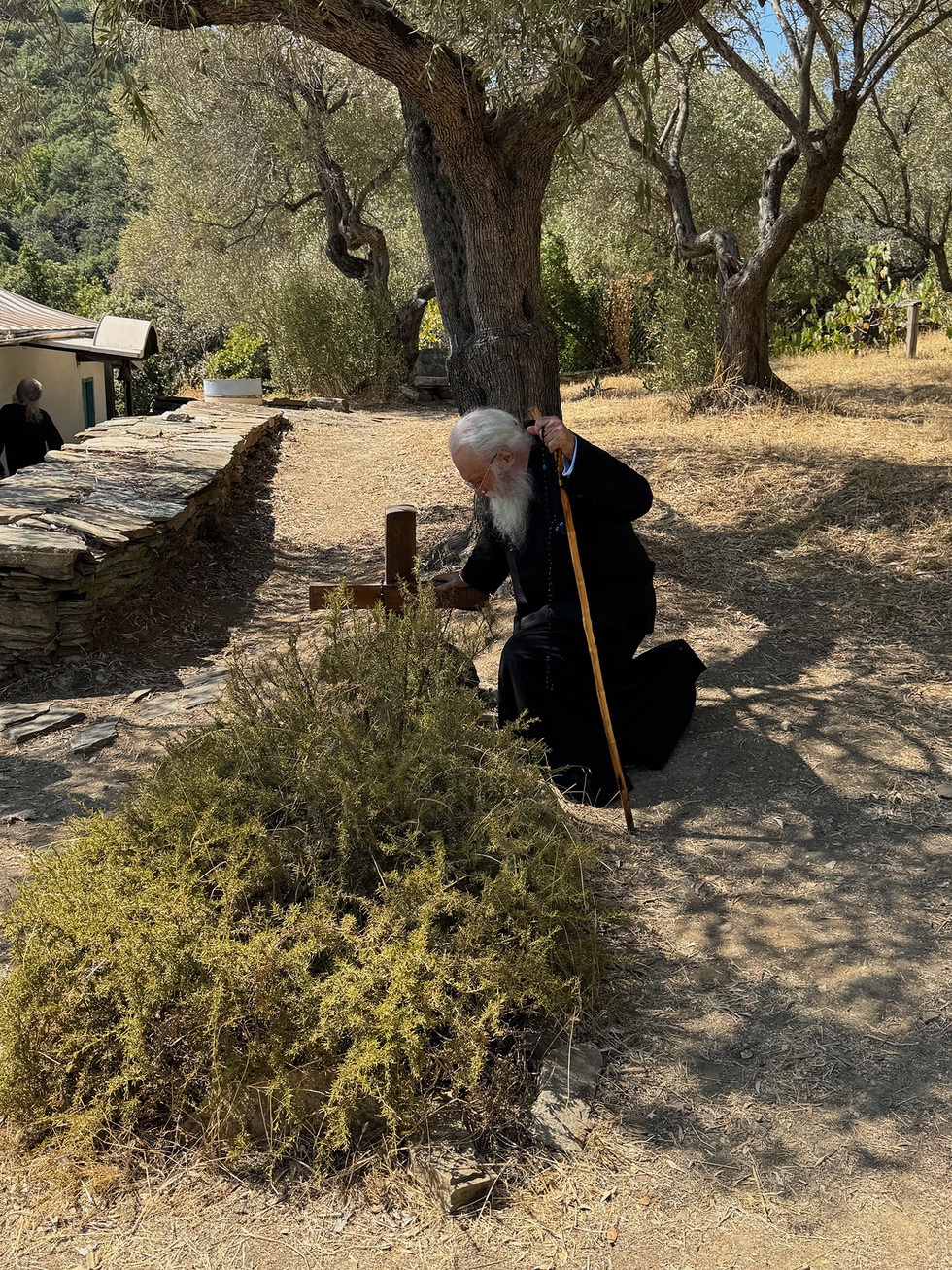 Ο Γέροντας Νεκτάριος με πατέρες από το μοναστήρι του, προσκυνούν τον τάφο παπά Τύχωνα, εξομολόγου του Αγίου Παϊσίου. Σήμερα το...