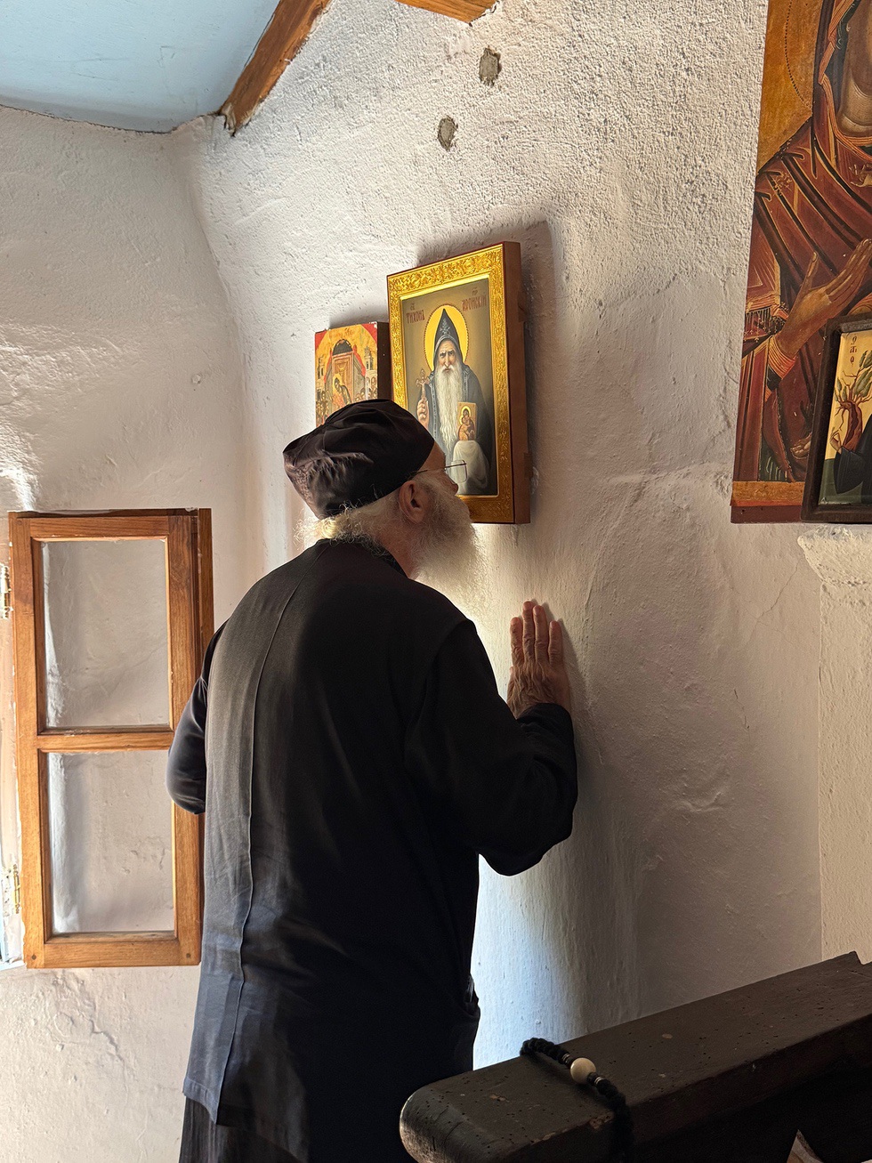 Ο Γέροντας Νεκτάριος με πατέρες από το μοναστήρι του, προσκυνούν τον τάφο παπά Τύχωνα, εξομολόγου του Αγίου Παϊσίου. Σήμερα το Οικουμενικό μας Πατριαρχείο ανακήρυξε τον παπά Τύχωνα και επισήμως άγιο της Ορθοδόξου Εκκλησίας.