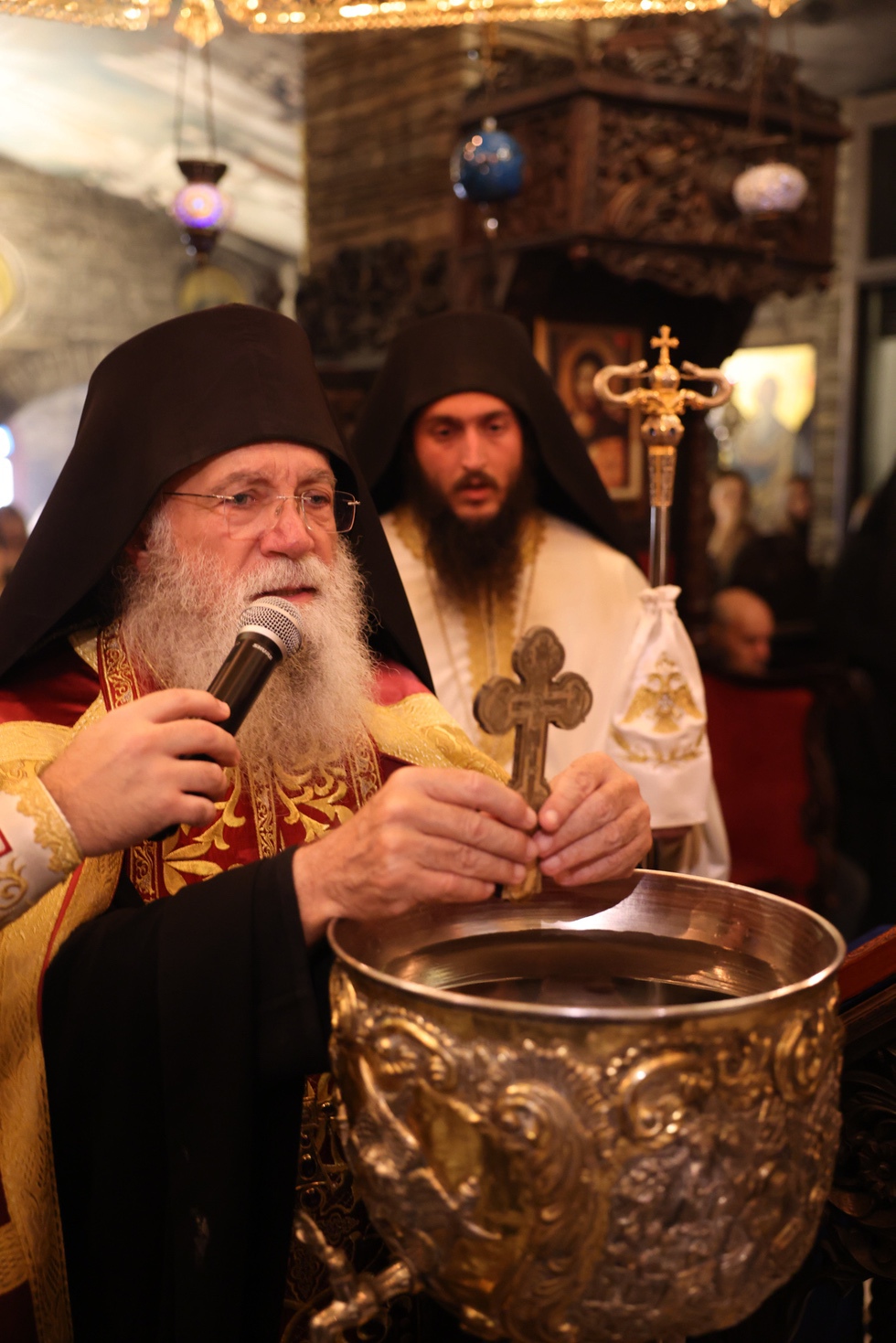 Μετά την πανηγυρική Θεία Λειτουργία ο Γέροντας και Καθηγούμενος της Μονής Αρχιμ. Νεκτάριος Μουλατσιώτης τέλεσε τον αγιασμό των υδάτων και δια του ύδατος τούτου ευλόγησε όλους τους πιστούς.