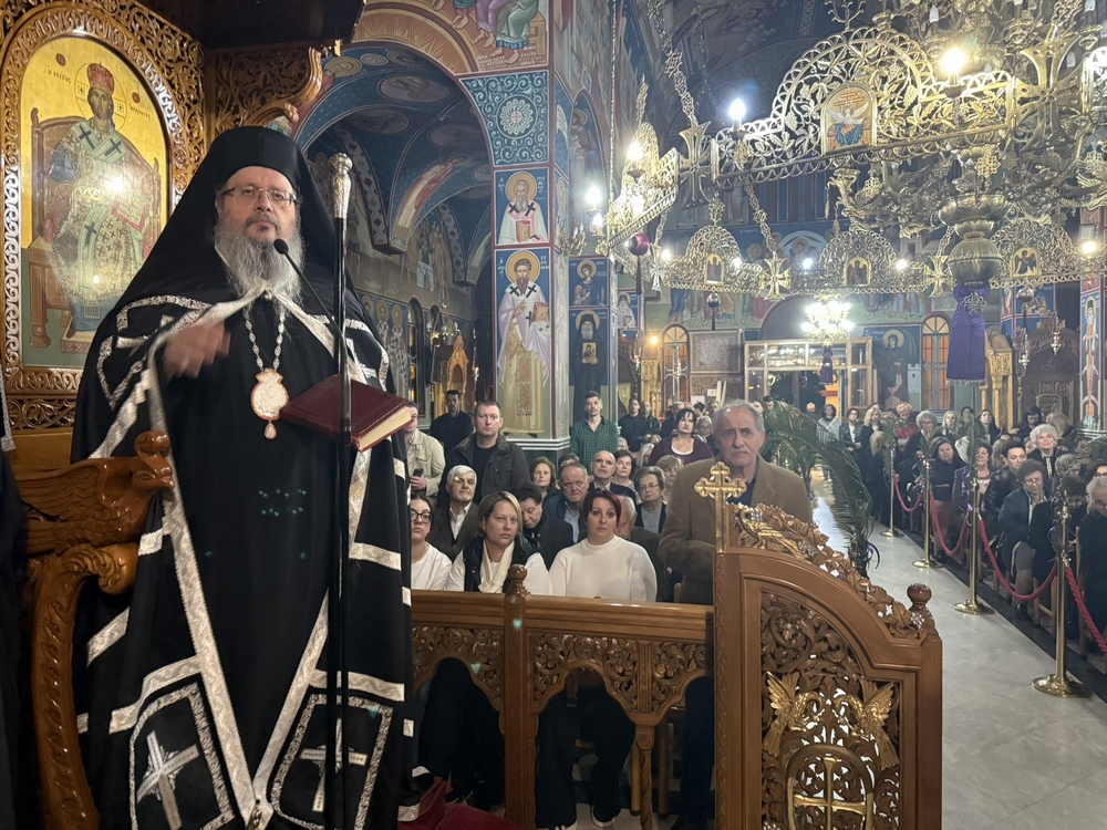 Προ της απολύσεως της Ακολουθίας του Νυμφίου ο Σεβασμιώτατος αναφέρθηκε στην ημέρα αυτή της Μεγάλης Εβδομάδος, η οποία ανέδειξε την μετάνοια της πόρνης γυναίκας και την ευγνωμοσύνη της προς τον λυτρωτή Χριστό ο οποίος την συγχώρεσε, ως απόδειξη ότι δεν υπάρχει αμαρτία, όσο βαριά κι αν θεωρείται, που το έλεος του φιλανθρώπου Θεού να μην μπορεί να συγχωρήσει.