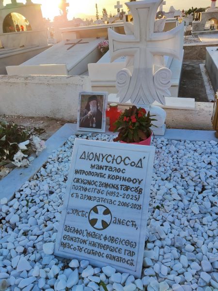 Το απόγευμα του Σαββάτου, 15 Νοεμβρίου 2025, ημέρα της Ενθρονίσεως του νέου Ποιμενάρχου μας Μητροπολίτου Κορίνθου κ. Παύλου και αμέσως μετά το ενθρονιστήριο γεύμα, που παρετέθη προς τιμήν του, ο Σεβασμιώτατος, συνοδευόμενος από τον Θεοφιλέστατο Πρωτοσύγκελλο της Ι. Μητροπόλεως μας Επίσκοπο Κεγχρεών κ. Αγάπιο, μέλη της οικογενείας του μακαριστού, Ιερείς και Πιστούς, μετέβη στο Κοιμητήριο της Ζωοδόχου Πηγής Κορίνθου, όπου αναπαύεται ο μακαριστός προκάτοχός του Μητροπολίτης Κορίνθου κυρός Διονύσιος ο Δ’, και ετέλεσε νεκρώσιμο Τρισάγιο επί του τάφου του σε μια συμβολική και εξίσου ουσιαστική κίνηση, που εκφράζει την συνέχεια, την συνέπεια και τον σεβασμό που παρουσιάζει η Ορθόδοξη Εκκλησία μας στα 2.000 χρόνια της ιστορίας Της.