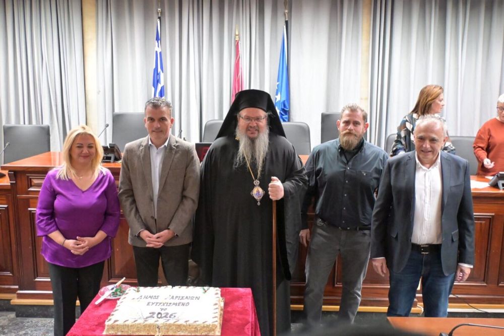 Στο Δημαρχείο της πόλεως μετέβη ο Σεβασμιώτατος Μητροπολίτης Λαρίσης και Τυρνάβου κ. Ιερώνυμος και ευλόγησε την βασιλόπιτα του Δημοτικού Συμβουλίου, κατά τη διάρκεια της πρώτης συνεδριάσεως για το νέο έτος 2026, παρουσία του Δημάρχου Λαρισαίων κ. Αθανασίου Μαμάκου και των επικεφαλής όλων των παρατάξεων.