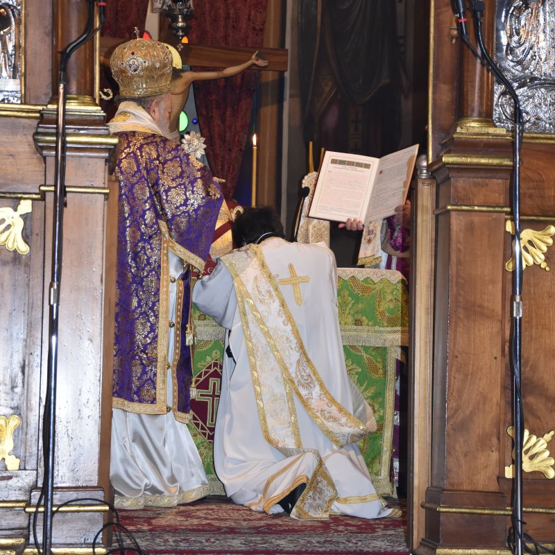 Επίσης, αναγνώσθηκε η Εγκύκλιο 3104 της Ιεράς Συνόδου της Εκκλησίας της Ελλάδος «Περί των Ιερατικών Κλήσεων» και στη λατρευτική σύναξη συμμετείχαν πολλοί Αναγνώστες και υποψήφιοι Κληρικοί της τοπικής μας Εκκλησίας προσκεκλημένοι του Σεβασμιωτάτου Ποιμενάρχου μας, ο οποίος, προ του «Δι’ ευχών», ευχήθηκε στους εκκλησιασθέντες πιστούς να ενδυναμώνονται από τον Τίμιο Σταυρό, για τη συνέχεια της Νηστείας, ανέφερε τη μέριμνα της τοπικής μας Εκκλησίας υπέρ των υποψηφίων Κληρικών και επεσήμανε ότι η μέριμνα αυτή είναι και πρέπει να είναι έργο όλων των μελών της Εκκλησίας.