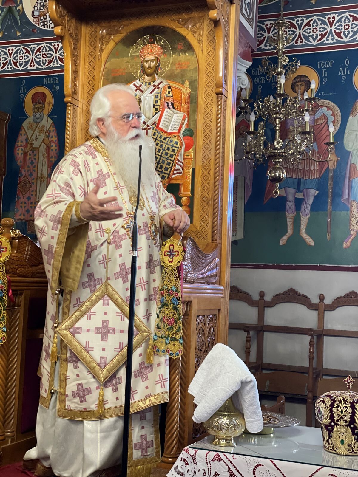 Από τη μεριά του, ο Σεβασμιώτατος εξέφρασε τη χαρά του για την ευκαιρία να λειτουργήσει με τους μαθητές και τις μαθήτριες, υπογραμμίζοντας ότι, «μαζί συλλειτουργήσαμε σήμερα, γιατί μόνος μου ούτε εγώ μπορώ να τελέσω αυτή τη Θεία Λειτουργία, ούτε εσείς χωρίς τους ιερείς μου. Έτσι λειτουργούμε, όλοι μαζί» Στη συνέχεια αναφέρθηκε στο βαθύτερο νόημα της Θείας Ευχαριστίας, τονίζοντας ότι «το ψωμί και το κρασί γίνονται Σώμα και Αίμα Χριστού, και όταν κοινωνούμε γινόμαστε ένα με τον Χριστό και ένα μεταξύ μας, σαν αδέρφια, σαν ένα σώμα». Επισημαίνοντας ότι η Θεία Κοινωνία είναι πηγή ενότητας και αληθινής αγάπης, προσέθεσε: «αν κοινωνώ από ένα ποτήρι δεν μπορώ να πονάς εσύ και να μην πονάω, δεν μπορώ να σε περιφρονώ, να σε ξεχωρίζω ή να σε κατηγορώ. Αν είμαι του Χριστού, πρέπει να κάνω αυτό που θα έκανε ο Χριστός»